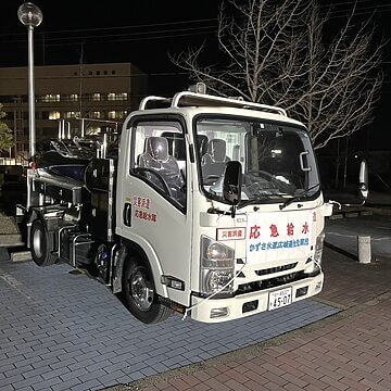 被災地への応急給水活動を支援するため、給水車を派遣します。