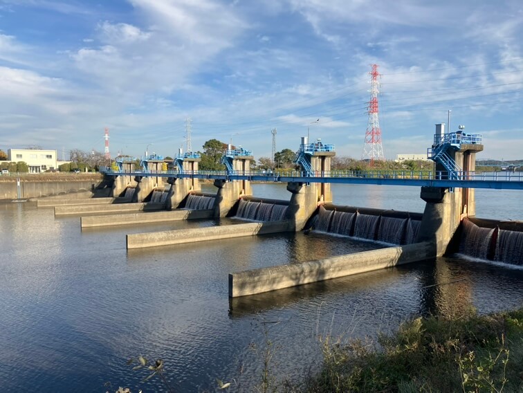 小櫃堰は、小櫃川の水を堰き止めて汲み上げ、農業用水や水道用水を安定的に供給する大切な構造物です。