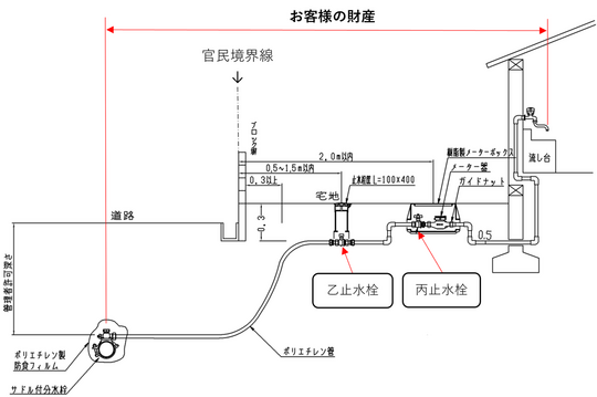 給水装置は図のとおりお客様の財産です。